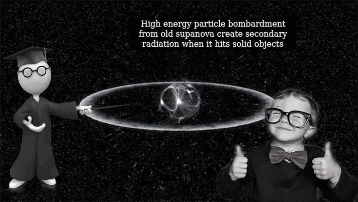 High-energy particles of old supernova shred deep space, it would’ve killed the wankerz…