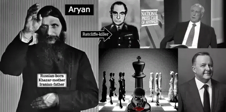 You can read my other recent posts for context on these graphics or, I’ll dumb it right down for any of you who need things dumbed right down ~ I’m a witness to crimes against humanity committed by America’s Central Intelligence Agency, specifically by evil people working for with or within the agency but not working for the best interests of America ~ Many if not all of those who committed child and baby-torture murders I’m waiting to give evidence on are of Aryan descent ~ That means they possess patriarchal bloodlines that you can trace back to Iran, in the case of the FBI’s Mueller and Australia’s Paul Keating and America’s Veep Harris, via Odessa SS Kutschmann and his father who was the Russian-born (Khazar-mother) Rasputin ~ Long story short the current PM of Australia Anthony Albanese is also a great-grandson of Rasputin via Keating and Kutschmann and thus of part-Iranian descent too, and they’re all part of an international Masonic ritual murder culture…