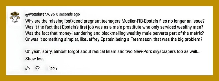 Pathetic attempt at lowbrow political wit below merely to try to create a satirical perspective…